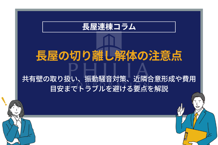 連棟長屋の切り離し解体は可能?注意点とトラブル防止策
