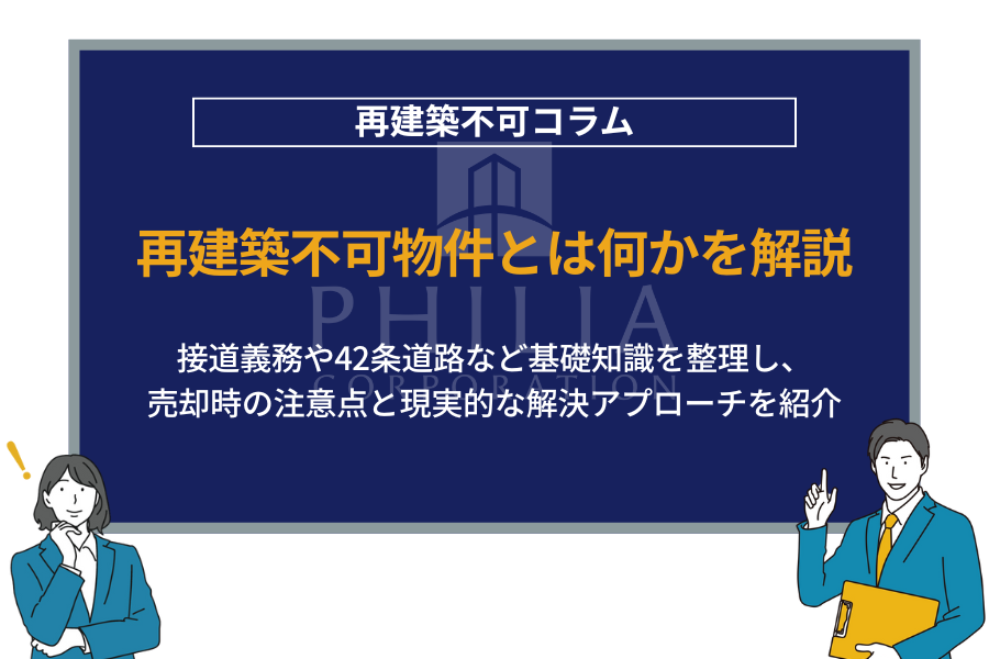 フィリアコーポレーション(当社)もまさに再建築不可物件などの特殊な不動産に特化した専門業者の一つです。次章では、フィリアコーポレーションが実際に手がけた事例をもとに、再建築不可物件の問題解決の流れを見てみましょう。ご自身の状況に置き換えて、具体的なイメージを持っていただければ幸いです。